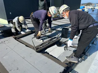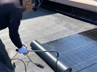 アスファルトにゴムや樹脂などの改質剤を混ぜてシート状にしたものを「トーチ」「ディスク盤等で固定(機械固定)」「粘着」で張り付ける防水工法です。