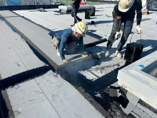 防水工種の中では最も歴史があり、合成繊維不織布のシートに、液状に溶かしたアスファルトを染み込ませコーティングした、ルーフィングシートを積層することで信頼性と耐久性を持ち合わせた防水工法です。