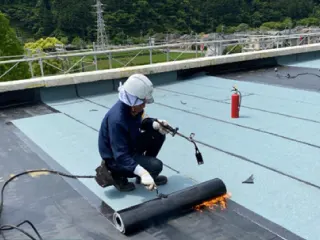 アスファルトにゴムや樹脂などの改質剤を混ぜてシート状にしたものを「トーチ」「ディスク盤等で固定(機械固定)」「粘着」で張り付ける防水工法です。