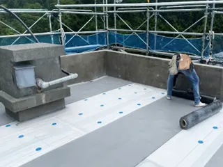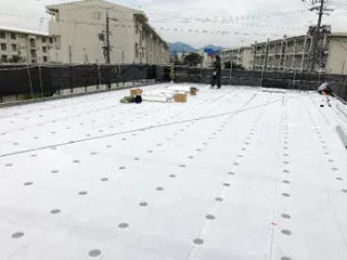 防水工種の中では最も歴史があり、合成繊維不織布のシートに、液状に溶かしたアスファルトを染み込ませコーティングした、ルーフィングシートを積層することで信頼性と耐久性を持ち合わせた防水工法です。